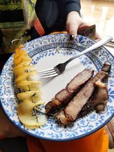 El cuchillo corta bien las patatas. No se para. Quizás las púas del soporte un poco cortas y por lo tanto las verduras se resbalan. Pero en principio algo cómodo.