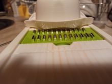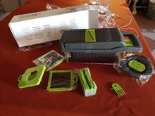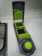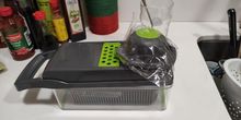 Muy buen producto, merece la pena por el precio. Se ve un plástico resistente y una chuchilla que corta bien. Fácil de limpiar. Envío muy bien envalado, en perfecto estado.