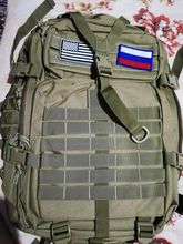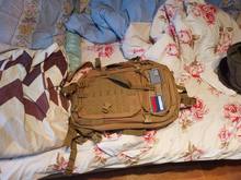 El material es denso, dentro de PVC como el bote de pesca, creo que la lluvia aguantará, el tamaño es solo una bomba, cerca de 30 litros en comparación, las correas son grandes densas, la parte trasera es densa, los broches son buenos, el color es bonito militar, ponía más y la bandera rusa, el vendedor se lava las manos. Envío 6 días a zaratova.